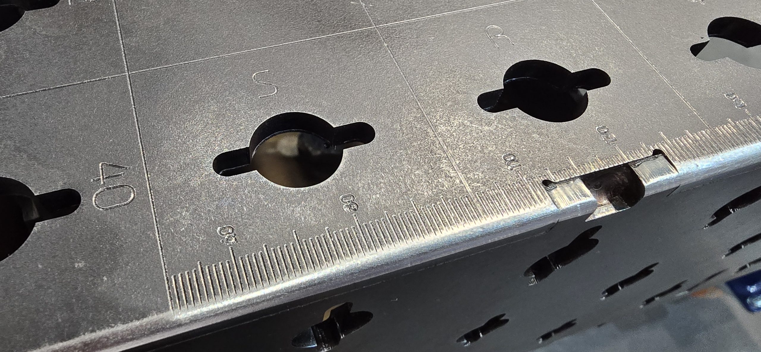Plateau et flancs perforés (600 perçages soit autant de possibilités de fixation sur le plateau)